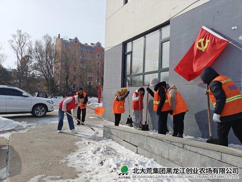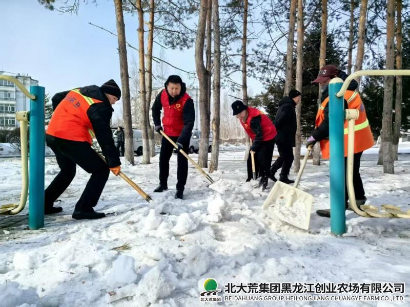 针对农场道路结冰、路面湿滑等安全隐患,志愿者们闻令而动、迅速集结,携带铁锹、扫帚、除冰铲等工具,对主次干道、人行道、路口坡道等重点区域开展拉网式除冰作业。大家分工协作、默契配合,挥锹破冰、铲雪清障、清扫残冰,不放过一处死角、不留下一处隐患。“志愿红”“环卫橙”交相辉映,成为街头最温暖的风景。